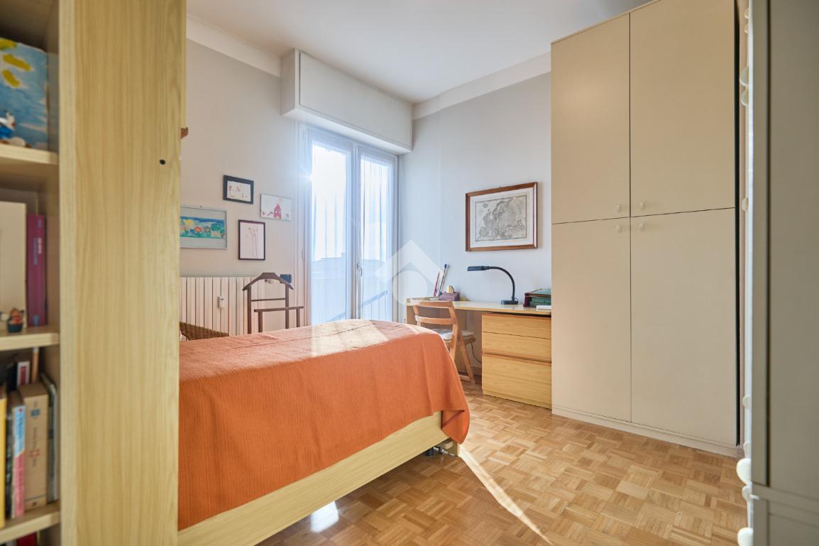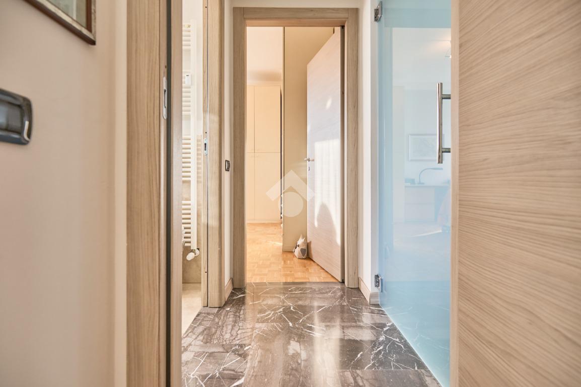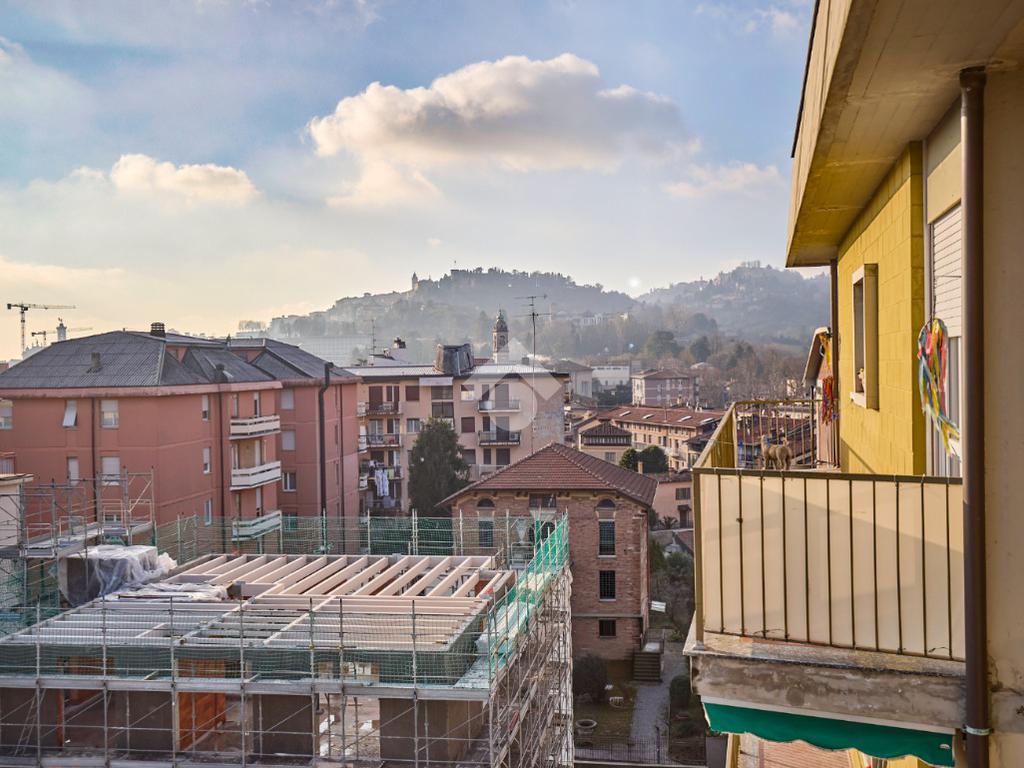 Situato al sesto piano, l’appartamento gode di una straordinaria vista panoramica che si apre sulla città bassa e sulla città alta, offrendo scorci suggestivi e una piacevole sensazione di apertura. L’esposizione sud-est garantisce un’eccellente luminosità naturale per gran parte della giornata, ulteriormente valorizzata dalla presenza di tre ampi balconi che rendono gli ambienti ariosi e vivibili.